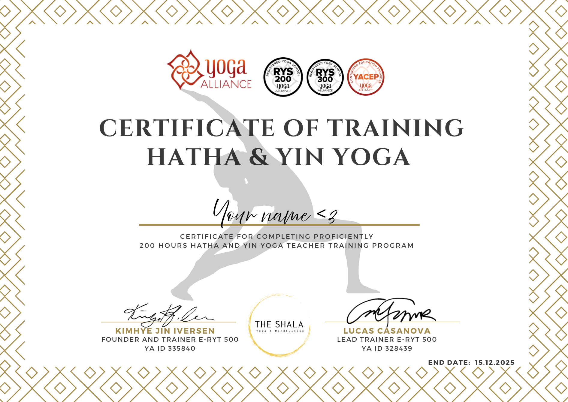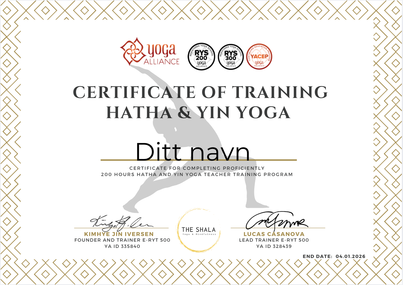 The Shala Yoga & Mindfulness er sertifisert i Yoga Alliance som RYS500 med ID: 329091 og denne utdanningen gir deg akkreditering som RYT200.